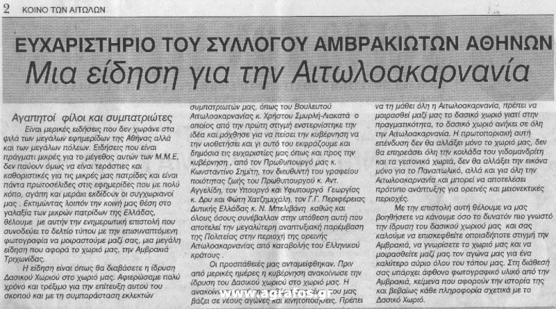 Δημοσίευση ΑΦΙΕΡΩΜΑ ΣΤΗΝ ΑΜΒΡΑΚΙΑ